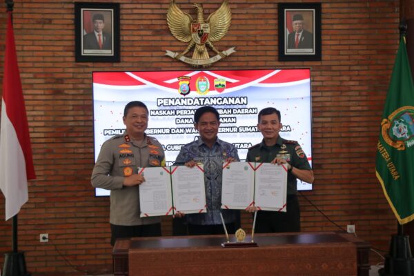Rizky Zulianda)* (H15/DISKOMINFO SUMUT)*FOTO :* Penjabat (Pj) Gubernur Sumatera Utara (Sumut) Hassanudin memimpin Rapat Koordinasi (Rakor) Forkopimda, KPU, Bawaslu Sumut…