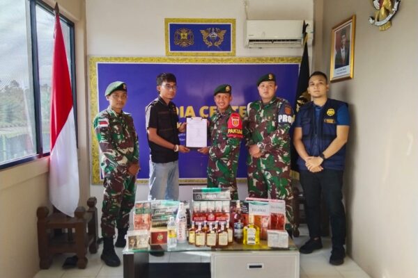 Satgas Pamtas Yonarmed 10/ Bradjamusti Serahkan Barang Bukti Hasil Tangkapan Sweeping Nataru Kepada Bea dan Cukai Nanga Badau