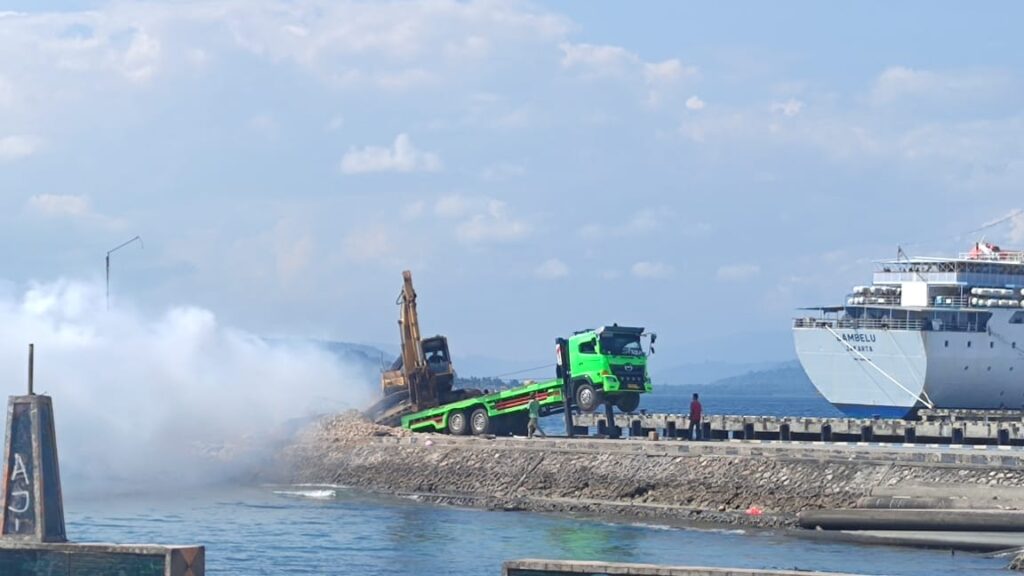 SPIONNEWS.ID, BAUBAU – Sebuah alat berat Excavator merek Komatsu nyaris terjatuh ke laut akibat diduga gagal saat dinaikan ke truk tronton yang berlokasi di Pelabuhan Murhum Kota Baubau Provinsi Sulawesi Tenggara pada Selasa (17/06/2025).