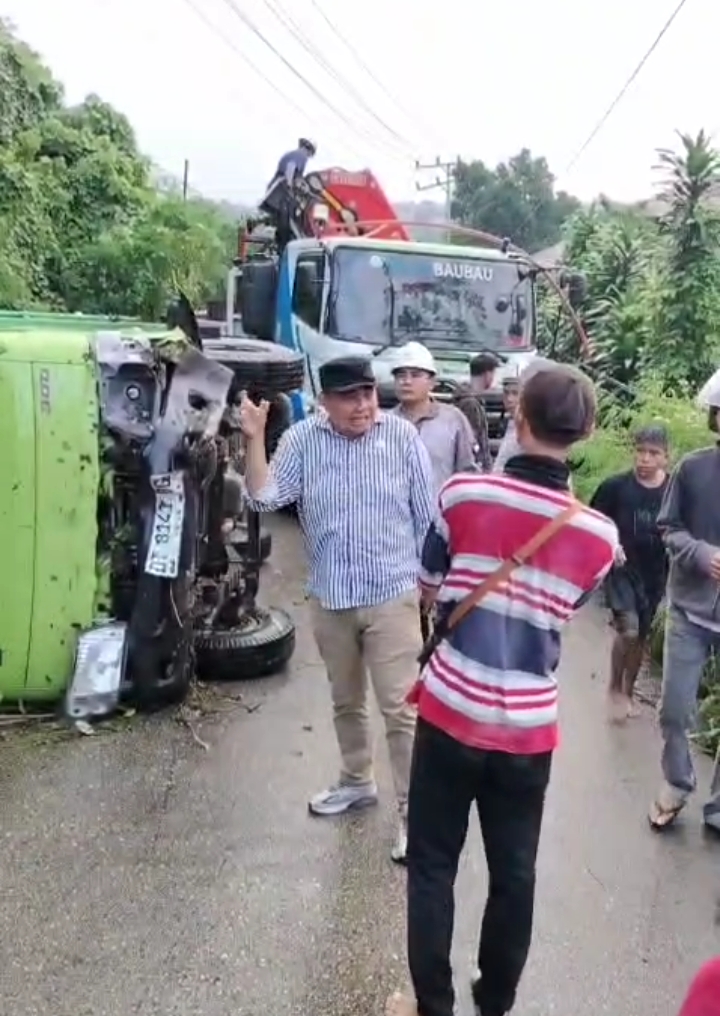 Ketika itu salah satu anggota DPRD Kota Baubau H. Hasan Basri melintas, dengan melihat keadaan tersebut, maka kader Partai Golkar tersebut memanggil mobil derek untuk bisa membantu dan memberikan mobil yang terguling tersebut.