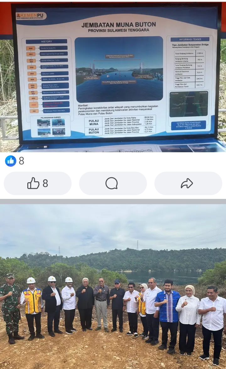 “Saat menunggu kedatangan Pak Menteri PU untuk mendarat di Bandara Baubau, saya mengulang kembali pernyataan saya ke Pak Gub, bahwa kalau Jembatan Tona terbangun di era sekarang, itu akan menjadi legacy buat masyarakat Buton dan Muna, apalagi kami yang di Buteng dan Baubau. Pak Gub menyampaikan bahwa saat saya beraudiensi dengan Menteri PU hanya dua saya minta, pertama Jembatan Buton Muna, kedua bagaimana Aspal Buton dimanfaatkan,” jelasnya.