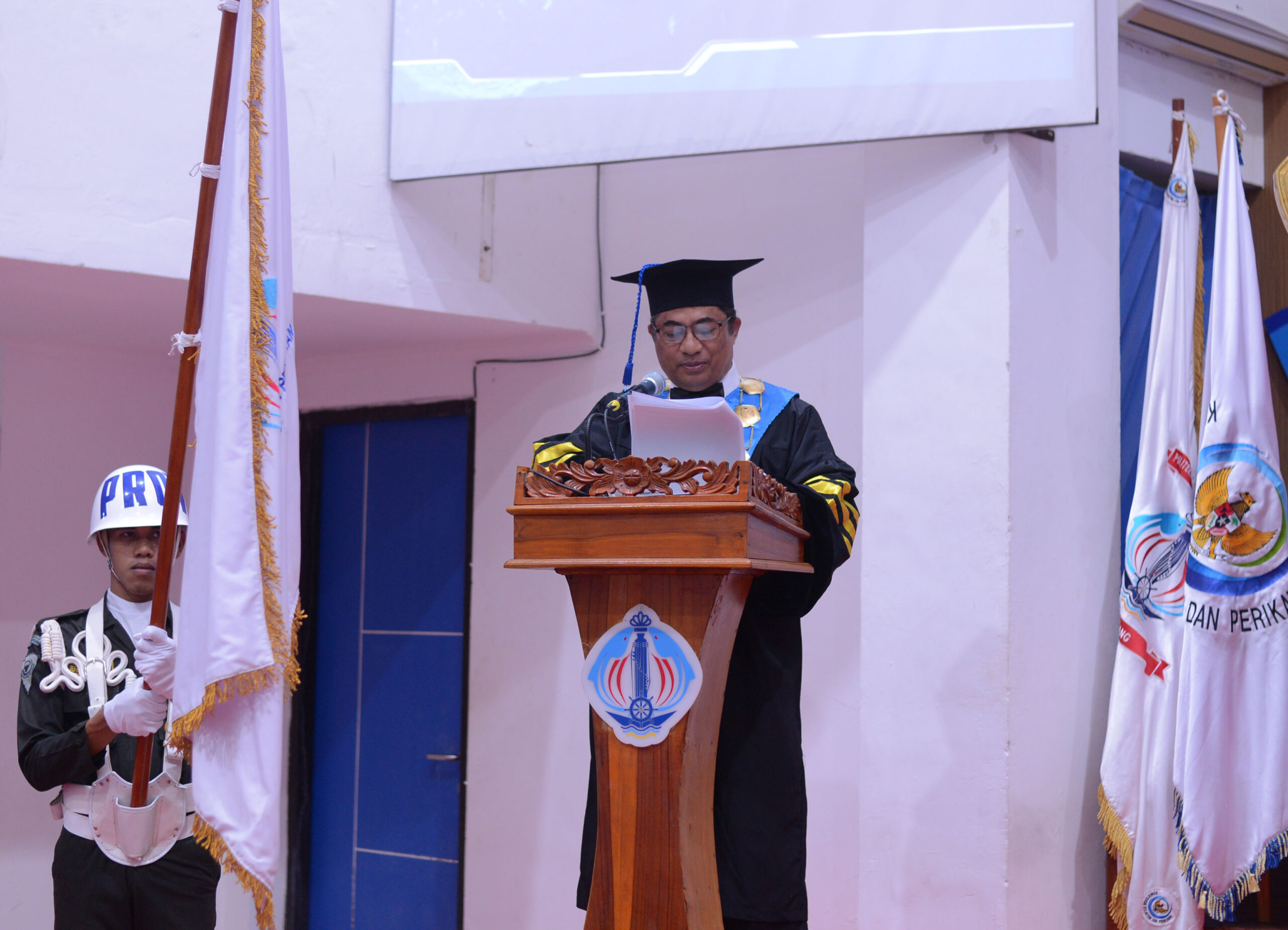 Lanjutnya,” dapat kami sampaikan bahwa hari ini sebanyak 207 calon wisudawan siap untuk diwisuda, yang terdiri dari 107 Orang Taruna dan 80 Orang Taruni. Asal daerah wisudawan, 98 % berasal dari Provinsi Nusa Tenggara Timur dan 2 % berasal dari Provinsi Sumatra Utara, Lampung dan Nusa Tenggara Barat. Calon wisudawan terbagi dalam tiga Program Studi, yaitu: Teknik Penangkapan Ikan (TPI) jumlah 69 dengan nilai rata – rata IPK 3,36., Mekanisasi Perikanan (MP) 105 dengan nilai rata – rata IPK 3,65., dan Teknik Budidaya Perikanan (TBP) dengan nilai rata – rata IPK 3,42.
