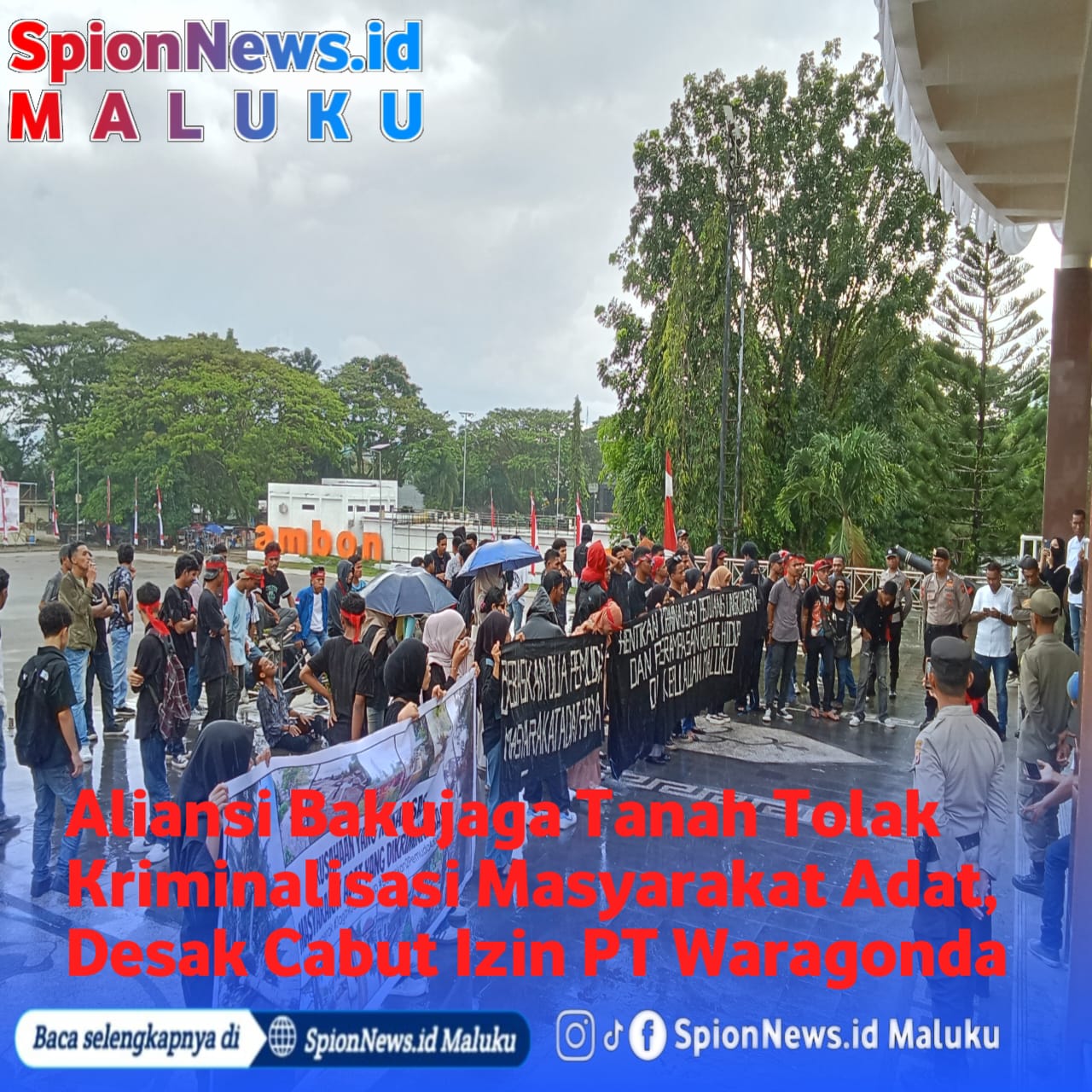 SPIONNEWS.ID MALUKU – Puluhan massa dari berbagai organisasi dan paguyuban yang tergabung dalam Aliansi Bakujaga Tanah menggelar aksi demonstrasi didepan Kantor Gubernur Maluku, massa tersebut menolak segala bentuk eksploitasi yang dilakukan PT Waragonda Minerals Pratama ditanah adat Negeri Haya, Kabupaten Maluku Tengah, Provinsi Maluku.