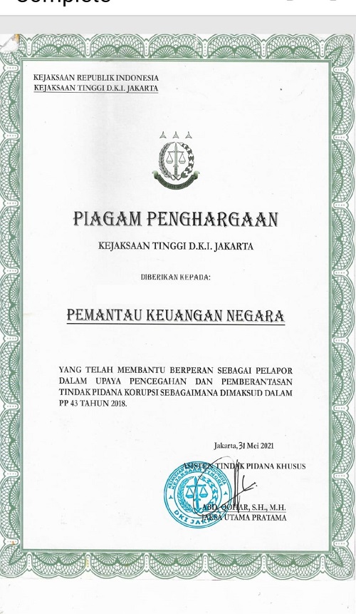 SPIONNEWS, JAKARTA – Pemantau Keuangan Negara (PKN), sebuah organisasi masyarakat yang bergerak di bidang pemberantasan korupsi, telah mencatatkan prestasi gemilang dengan menerima tujuh piagam penghargaan dari berbagai lembaga negara.