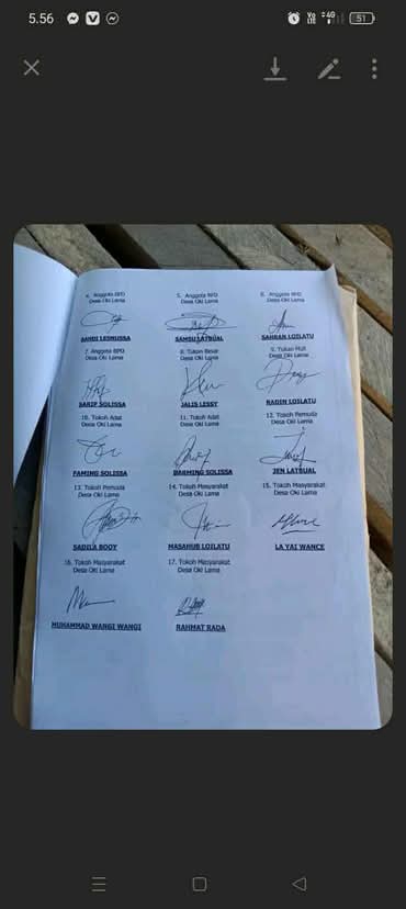 SPIONNEWS.ID, MALUKU – Situasi di Desa Oki Lama, Kecamatan Namrole, Kabupaten Buru Selatan, Provinsi Maluku kembali memanas setelah ditemukan berkas bodong yang diduga sebagai kesepakatan pergantian Penjabat (PJ) Roing Lesnussa.