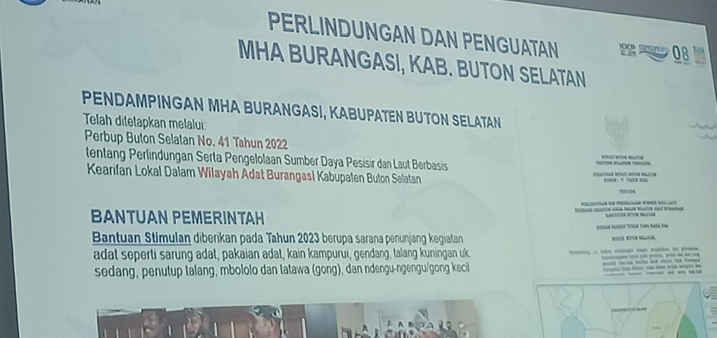 Belum lama ini pihak Kementerian Perikanan dan Kelautan dalam hal ini Direktorat Pesisir dan Pulau-Pulau Kecil melakukan pengambilan dan melihat secara lebih dekat daerah-daerah yang masih memiliki tatanan adat di wilayah kabupaten Buton Selatan.Dalam hasil rapat bersama dan sosialisasi tersebut Bupati Buton Selatan menegaskan bahwa daerah wilayah pesisir selaku masyarakat adat perlu didorong untuk bisa lebih optimal dalam pengembangan ekonomi masyarakat lokal berbasis budaya.