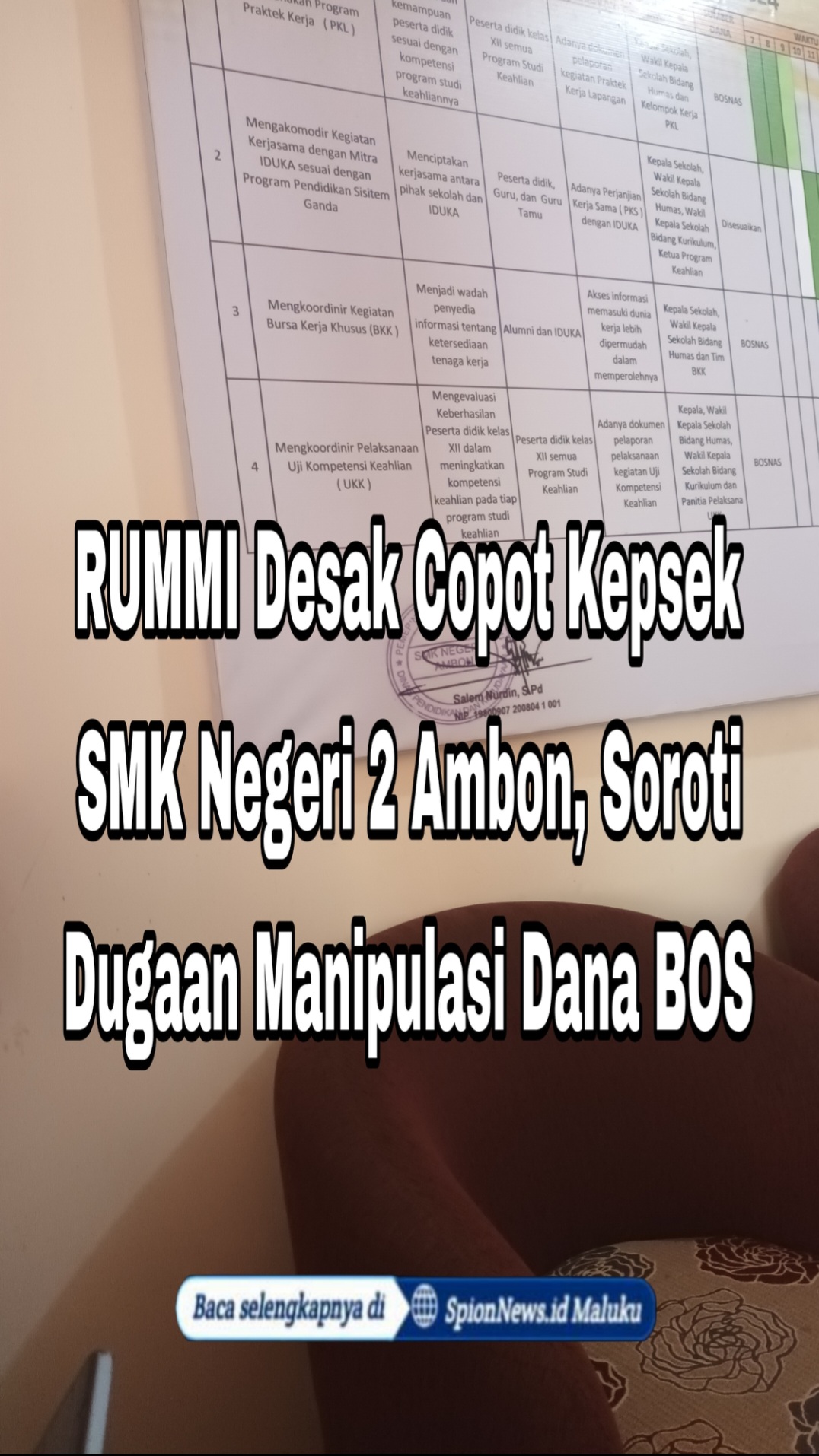 “Salem Nurdin telah gagal mengelola SMK Negeri 2 Ambon, membiarkan fasilitas siswa terbengkalai, dan tidak transparan dalam penggunaan dana BOS. Ini tidak boleh dibiarkan,” tegas Direktur RUMMI Fadel Rumakat.