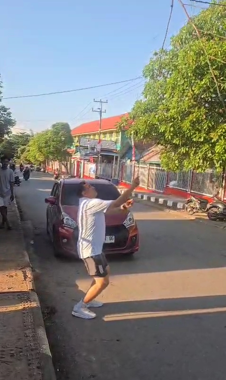 Depan sekolah SMP Negeri 1 Baubau. Ia menambahkan, dan ini pun saya coba untuk melepasnya dari kabel yang melintas di atas jalan raya tersebut, sebelum saya mengambil dan melepaskan dan tersebut saya bertanya pada warga setempat Sudah berapa hari dan tersebut berada di kabel, PLN , dan menurut warga sekitar sudah 3 hari cabang ranting itu bergelantungan di kabel PLN tersebut.