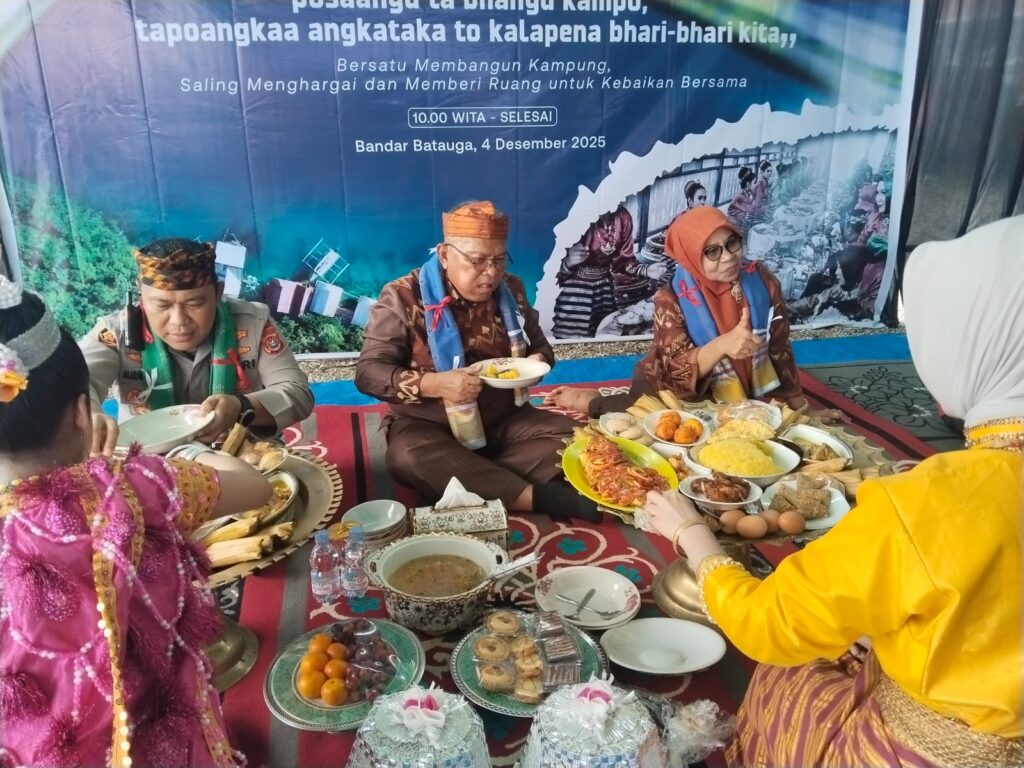 SPIONNEWS, Batauga — Ratusan Warga Bandar Batauga Penuhi Tenda yang menyajikan ratusan talang warga yang ada dalam tenda yang dihadirkan warga Kelurahan Bandar Batauga, kegiatan untuk pertama kalinya, masyarakat Kelurahan Bandar Batauga menggelar Pesta Adat Pakandeana Tao Kampo, Kamis (4/12/2025).Tradisi yang baru diinisiasi tahun ini mengangkat tema “Posaangu ta bhangu Kampo, topoangkaa angkataka to kalapena bhari-bhari kita”—yang bermakna bersatu membangun kampung, saling menghargai, dan memberi ruang bagi kebaikan bersama.