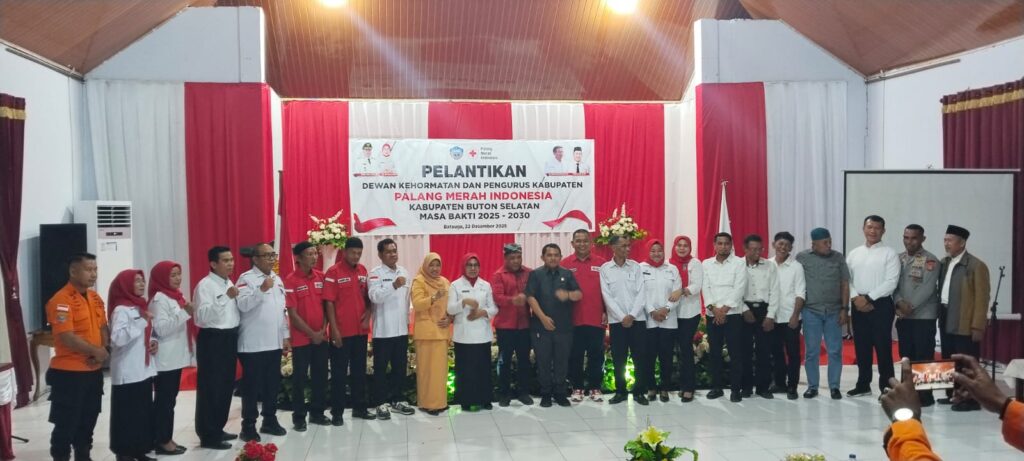 SPIONNEWS, BATAUGA – Palang Merah Indonesia Provinsi Sulawesi Tenggara telah melantik Dewan Kehormatan dan Pengurus Palang Merah Indonesia Kabupaten Buton Selatan, kegiatan yang dilaksanakan di Gedung Lamaindo, Kecamatan Batauga, Senin, 22/12/2025.