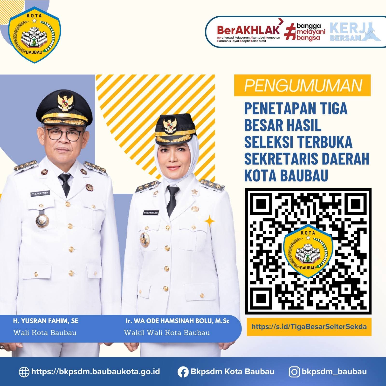 Kepala BKPSDM Kota Baubau, Ir. Wa Ode Muhibbah Suryani, M.Si dalam siaran persnya Minggu (21/12/2025) mengatakan, dari serangkaian tahapan yang telah dilaksanakan, maka sebagaimana tertuang dalam SK Nomor 013/PANSEL-JPTP-SEKDA/XII/2025, Pansel resmi telah menetapkan tiga peserta terbaik yang disusun berdasarkan abjad, yakni; La Ode Darus Salam, S.Sos, M.Si, Mohamat Abduh, STP, M.Si dan Sitti Munawar, S.STP, M.Si.