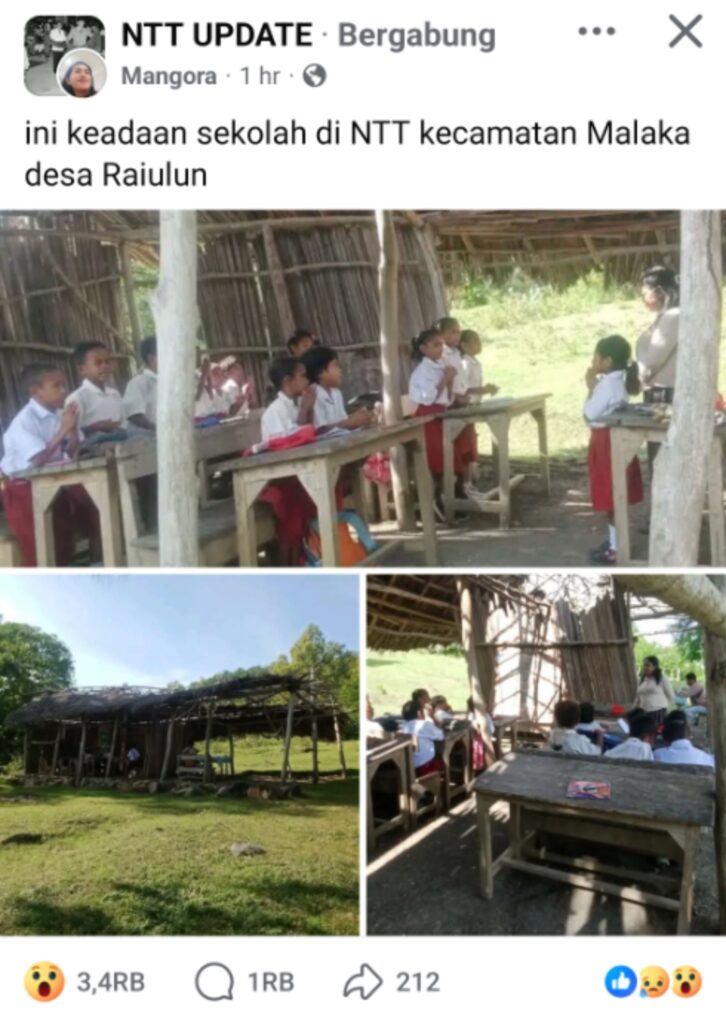 Bangunan kelas jauh dengan dinding bilik bambu dan lantai tanah ini menjadi tempat para siswa menimba ilmu setiap hari.Potret ketertinggalan infrastruktur pendidikan di pedalaman Indonesia ini diunggah oleh akun Facebook Mangora di grup "Update NTT", dan langsung menuai ribuan respons dari masyarakat Indonesia, dengan lebih dari 3,4 ribu reaksi, 1 ribu komentar, dan 212 kali dibagikan.