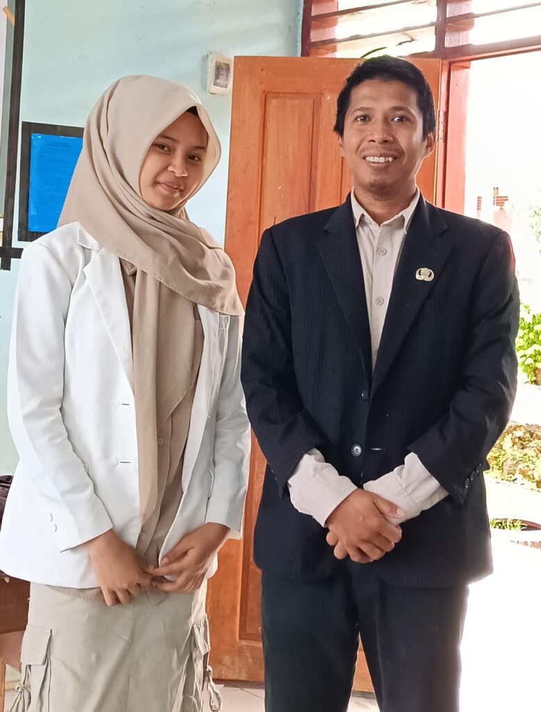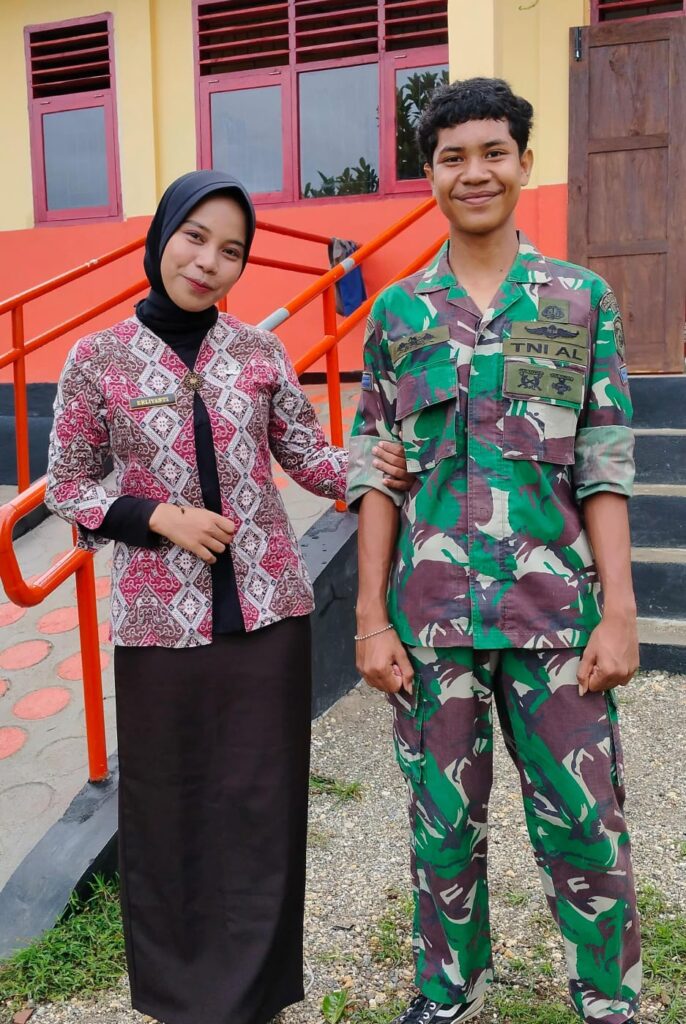 Salah satu Guru Berpose dengan Murid yang Bercita-Cita Menjadi TNI AL