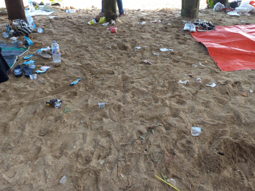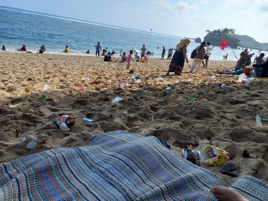 Sayangnya, aktivitas manusia berupa kunjungan wisata yang besar (mass tourism) tidak diikuti dengan kesadaran untuk menjaga pantai. Satu sorotan tajam adalah sampah wadah makanan dan minuman yang dibiarkan tergeletak di sepanjang pantai.