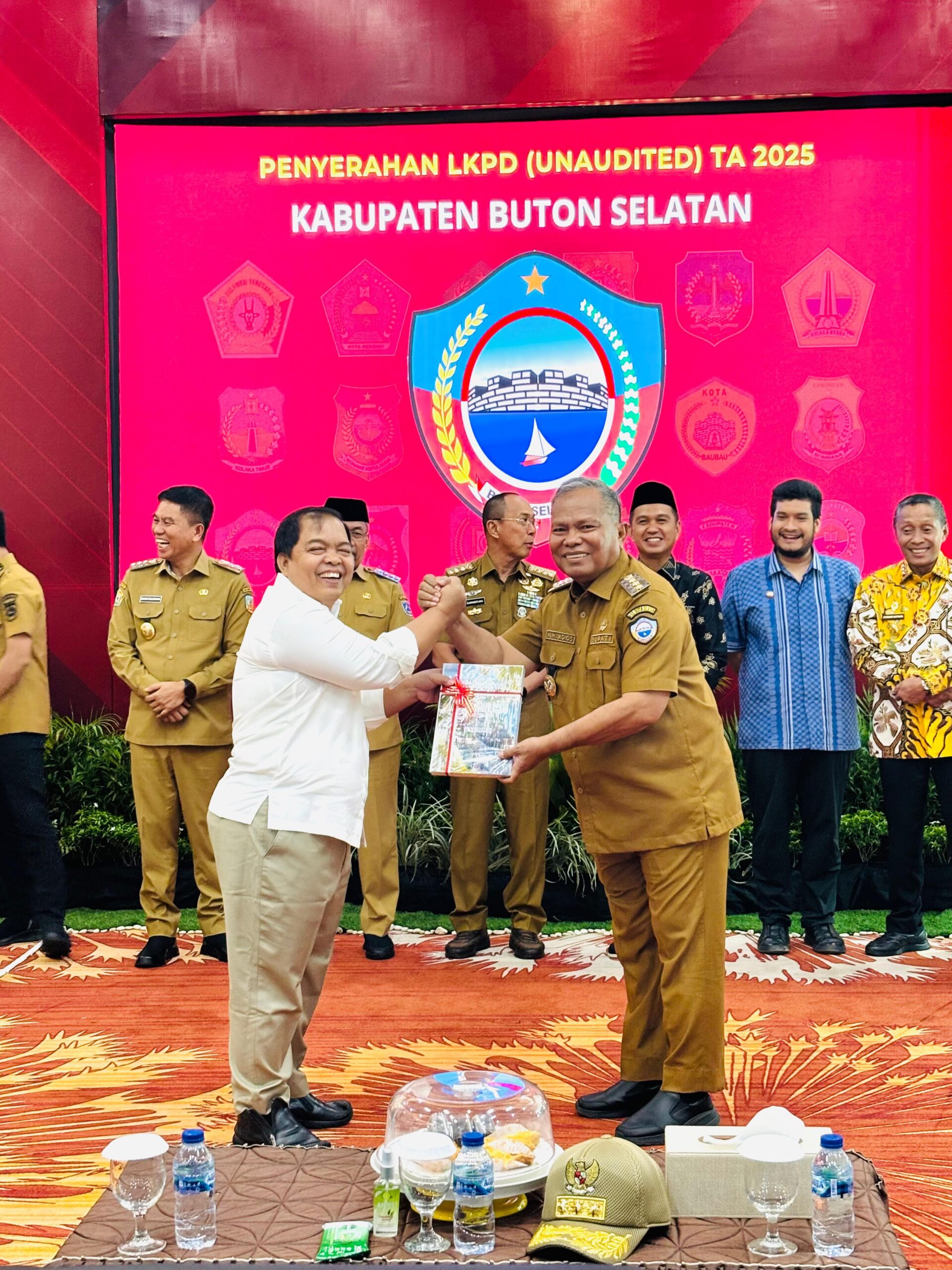 Dalam laporan keuangan Unaudited tahun anggaran 2025 Bupati Buton Selatan H. Muhammad Adios menerima berkas dokumen dari BPK RI perwakilan Sulawesi Tenggara terkait pengunaan anggaran tahun anggaran 2025.