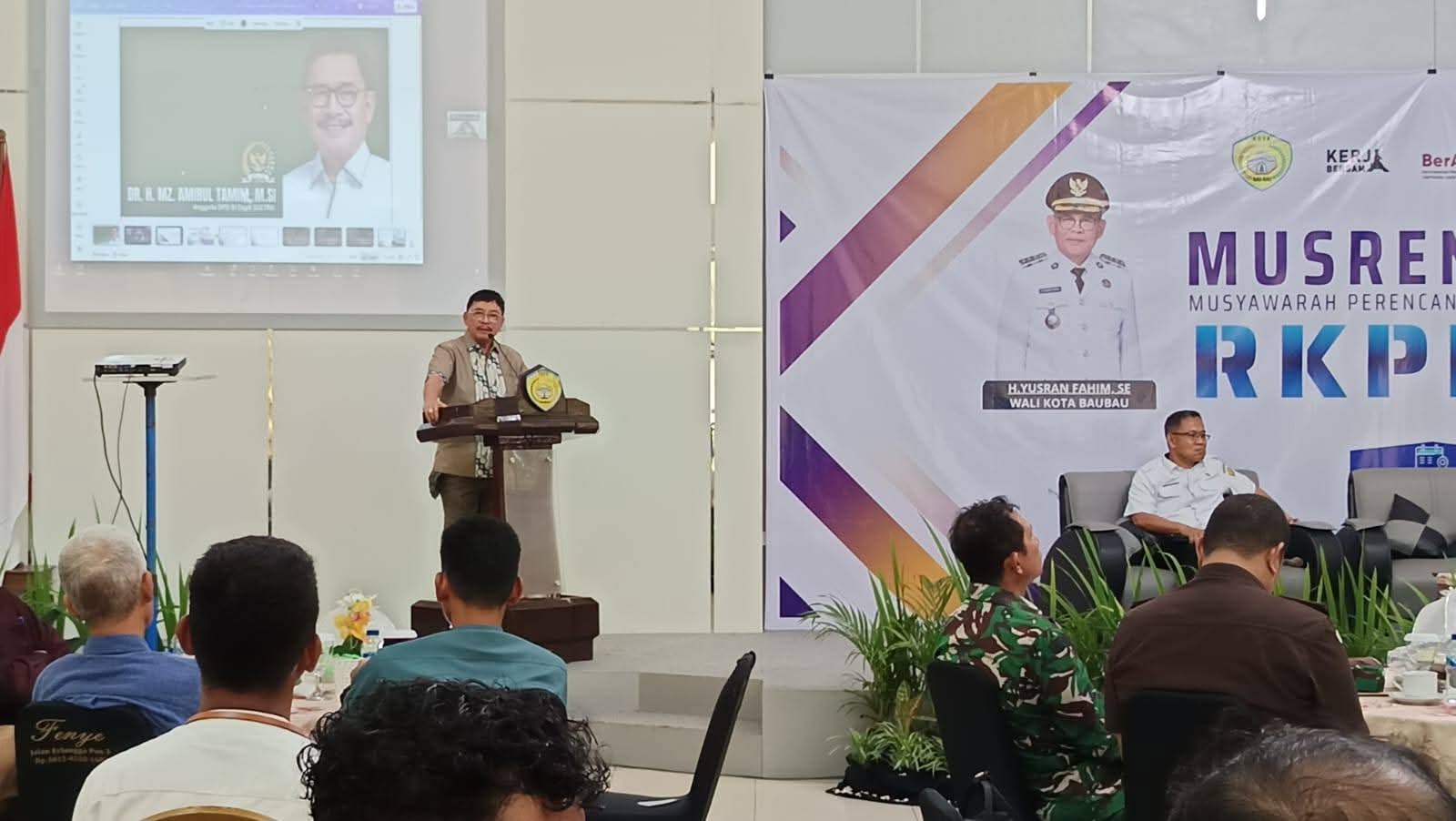 Hal tersebut disampaikannya saat memberikan pemaparannya selaku pemateri pada Musyawarah Perencanaan Pembangunan (Musrenbang) Rencana Kerja Pemerintah Daerah (RKPD) Kota Baubau Tahun 2027 di Aula Kantor Wali Kota Baubau, Senin (08/04/2026).