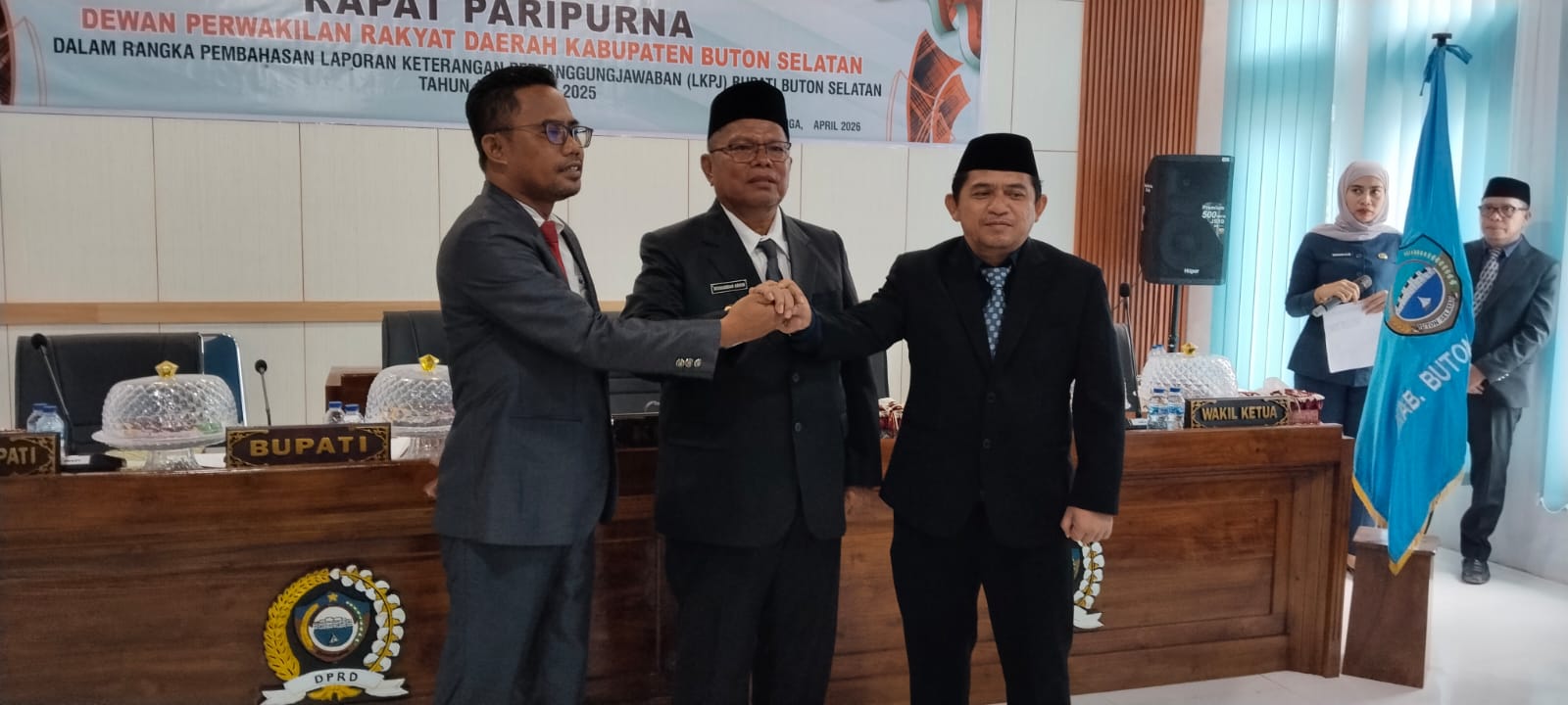 SPIONNEWS, Batauga – Pemerintah Kabupaten Bintan Selatan bersama dengan DPRD Kabupaten Buton Selatan melakukan rapat paripurna setelah melakukan pembahasan panjang hasil dari laporan kegiatan pertanggungjawaban Bupati Buton Selatan Tahun Anggaran 2025.
