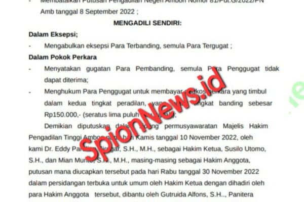 SPIONNEWS.ID,MALUKU – Masyarakat Dusun Lengkong dan Wainuru, Kecamatan Salahutu, Kabupaten Maluku Tengah, hari ini menyampaikan pernyataan sikap tegas menolak dan…