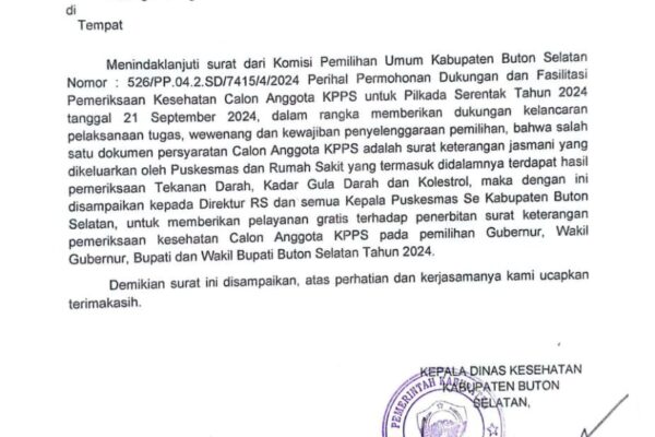 SPIONNEWS.ID, BUSEL – Dalam rangka mendukung suksesnya Pilkada Serentak 2024, Dinas Kesehatan Kabupaten Buton Selatan mengeluarkan kebijakan penting berupa pelayanan…